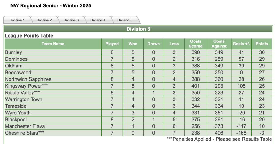 Final Score - Burnley 56 - Kingsway Power 44
